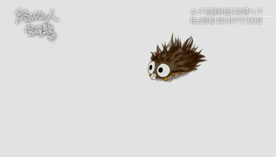 Lors d’une émission spéciale diffusée ce matin au Japon sur la NHK intitulée Owaranai Hito Miyazaki Hayao (l’Homme qui n’en a pas fini: Hayao Miyazaki), le célèbre réalisateur Hayao Miyazaki a annoncé qu’il souhaitait reprendre la réalisation d’un long métrage d’animation, après avoir pris sa retraite concernant la réalisation de films il y a trois ans. Il a travaillé sur « Kemushi no Boro » (Boro la chenille), un court-métrage en Animation 3D prévu pour le Musée Ghibli.