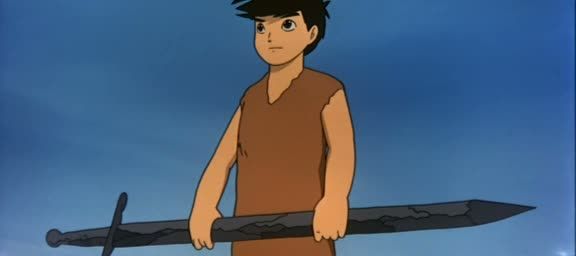 Les habitants du village sont affamés car un monstre, envoyé par Grunwald, les prive du poisson dont ils ont l’habitude de se nourrir. Horus va aider les villageois à combattre. Il rencontre aussi une mystérieuse jeune fille au chant envoûtant, Hilda et Moog, l’homme-rocher, qui a une épée plantée dans le haut du bras. Horus arrive à la retirer, et Moog lui en fait cadeau. Il lui apprend que cette épée est la fameuse épée du Soleil et que le jour où il arrivera à la maîtriser il sera devenu le prince du Soleil.